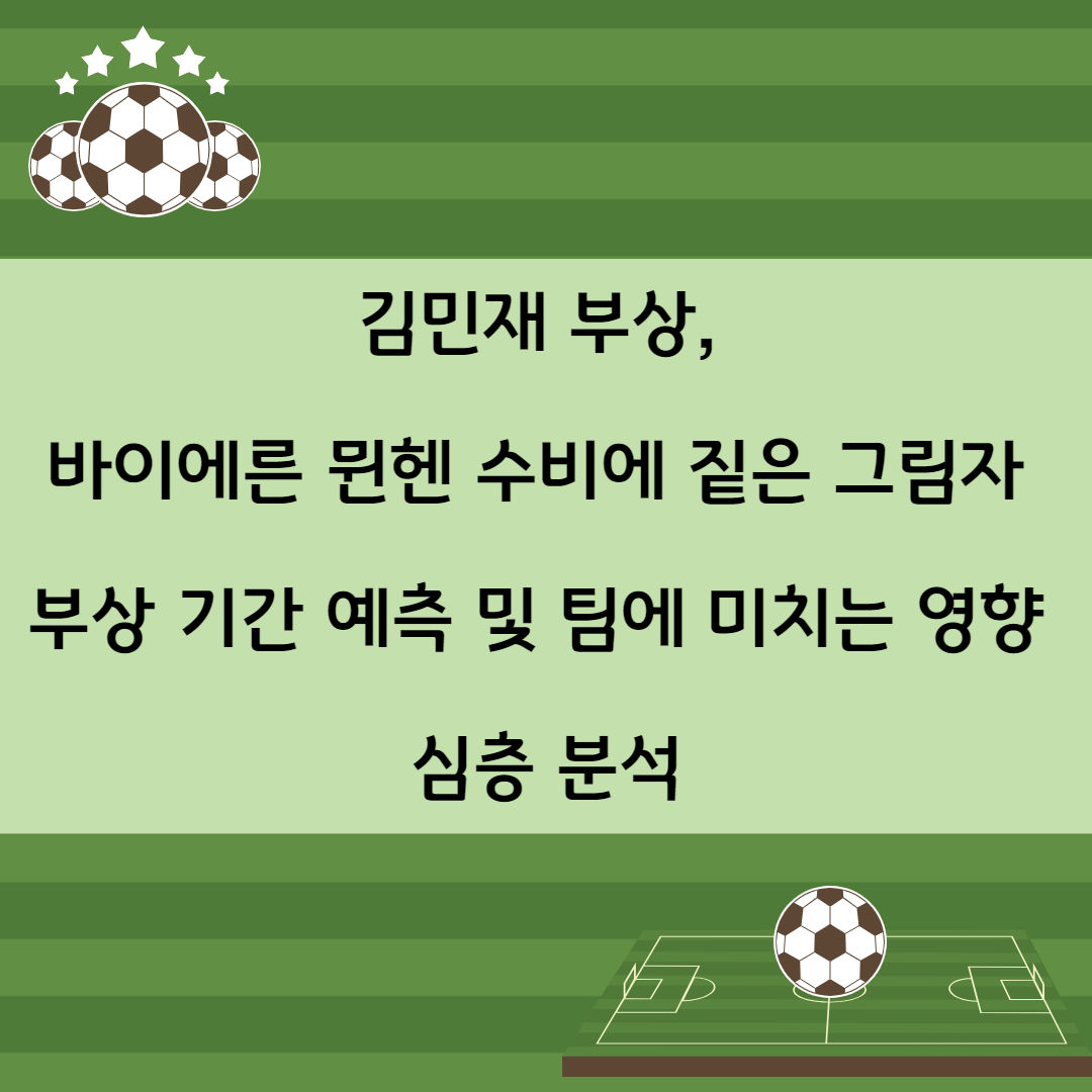 김민재 선수의 부상은 뮌헨에게 큰 손실이지만, 이는 팀이 더욱 성장할 수 있는 기회가 될 수도 있습니다. 뮌헨은 이번 어려움을 통해 더욱 단단해지고, 새로운 강팀으로 거듭날 수 있기를 기대합니다.